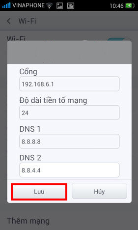 Bước 3: Điền các thông tin: Cổng, độ dài tiền tố mạng, DNS 1, DNS 2 như hình