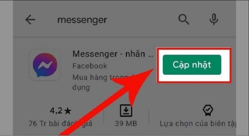 Khi muốn cập nhật ứng dụng Messenger lên phiên bản mới nhất, bạn chỉ cần mở App Store hoặc cửa hàng CH Play lên trên điện thoại. Sau đó, bạn tìm kiếm ứng dụng Messenger rồi nhấn vào nút Cập nhật bên cạnh ứng dụng là xong.