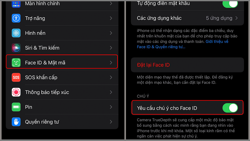 - Để tăng độ nhạy, tắt 'Yêu cầu chú ý cho Face ID' (nếu bạn thường mở khóa mà không nhìn trực tiếp)