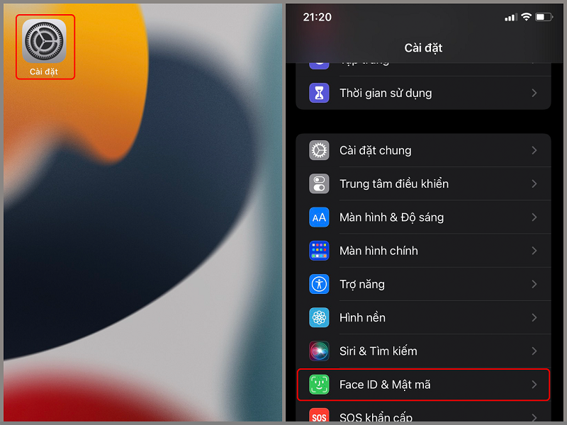 - Vào Cài đặt → Face ID và Mật mã → Nhập mật mã