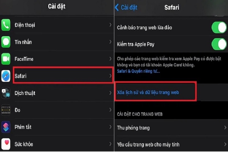 2. Xóa Cache và Lịch Sử Duyệt Web Trên Safari