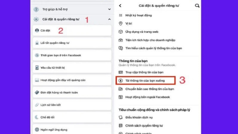 - Bước 2: Tiếp theo, bạn chọn vào mục Thông tin của bạn. Chọn Tải thông tin của bạn xuống để tiếp tục.