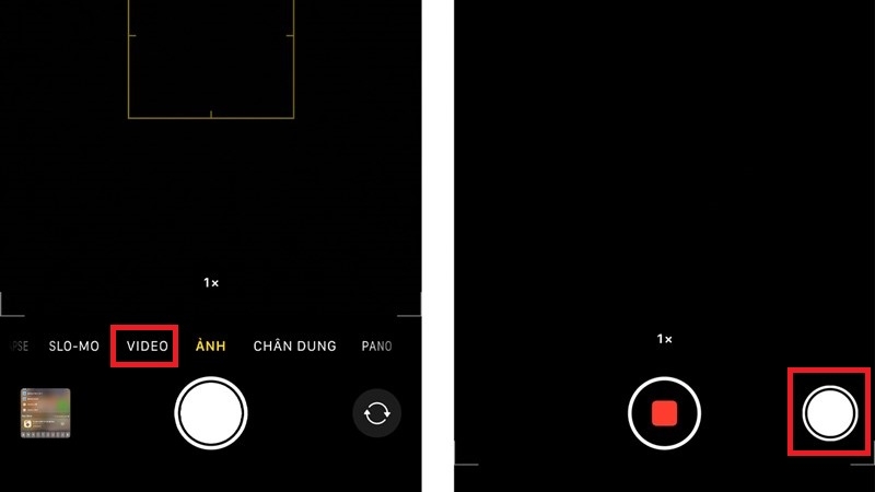 Mở Camera > Chuyển sang chế độ Video > Bắt đầu quay > Nhấn nút chụp trắng ở góc dưới trái để chụp ảnh tĩnh.