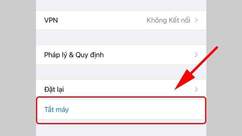 Bước 2: Sau đó, bạn cuộn màn hình xuống dưới và chọn Tắt máy.