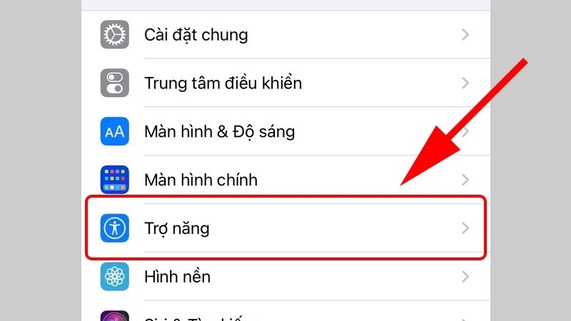 Bước 1: Bạn vào ứng dụng Cài đặt >> Chọn Trợ năng.