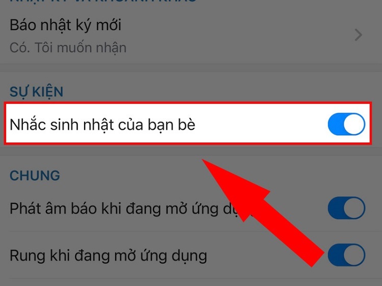 Bước 4: Tắt thông báo sinh nhật: