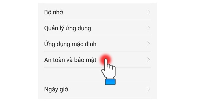 Bước 1: Trên thiết bị điện thoại Android, bạn vào phần Cài đặt >> Chọn An toàn và bảo mật (hay đối với một số dòng điện thoại Android khác là chọn mục Màn hình khóa và bảo mật).