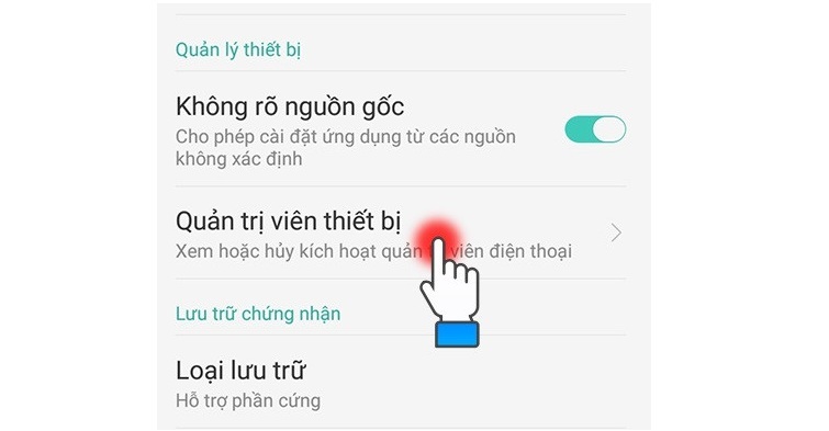 Bước 2: Tiếp theo, chọn vào phần Quản trị viên thiết bị.