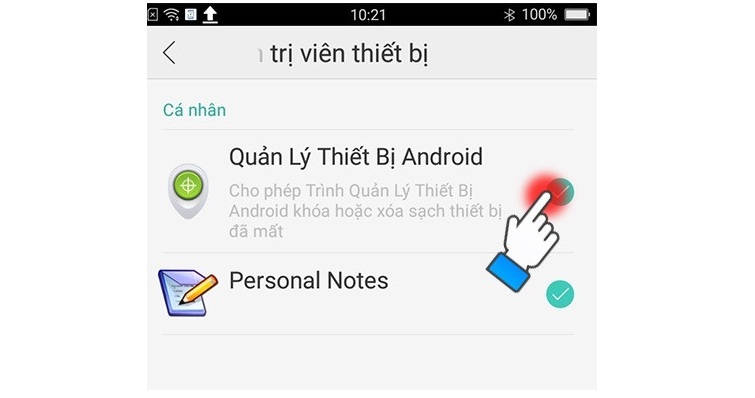 Bước 3: Tại giao diện Quản trị viên thiết bị, bạn tích vào ô Quản lý thiết bị Android trên điện thoại.