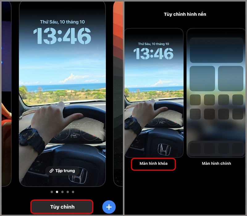 Từ màn hình chính hoặc màn hình khóa, giữ khoảng 3 giây. Chọn "Tùy chỉnh" sau đó bạn chọn Màn hình khóa.