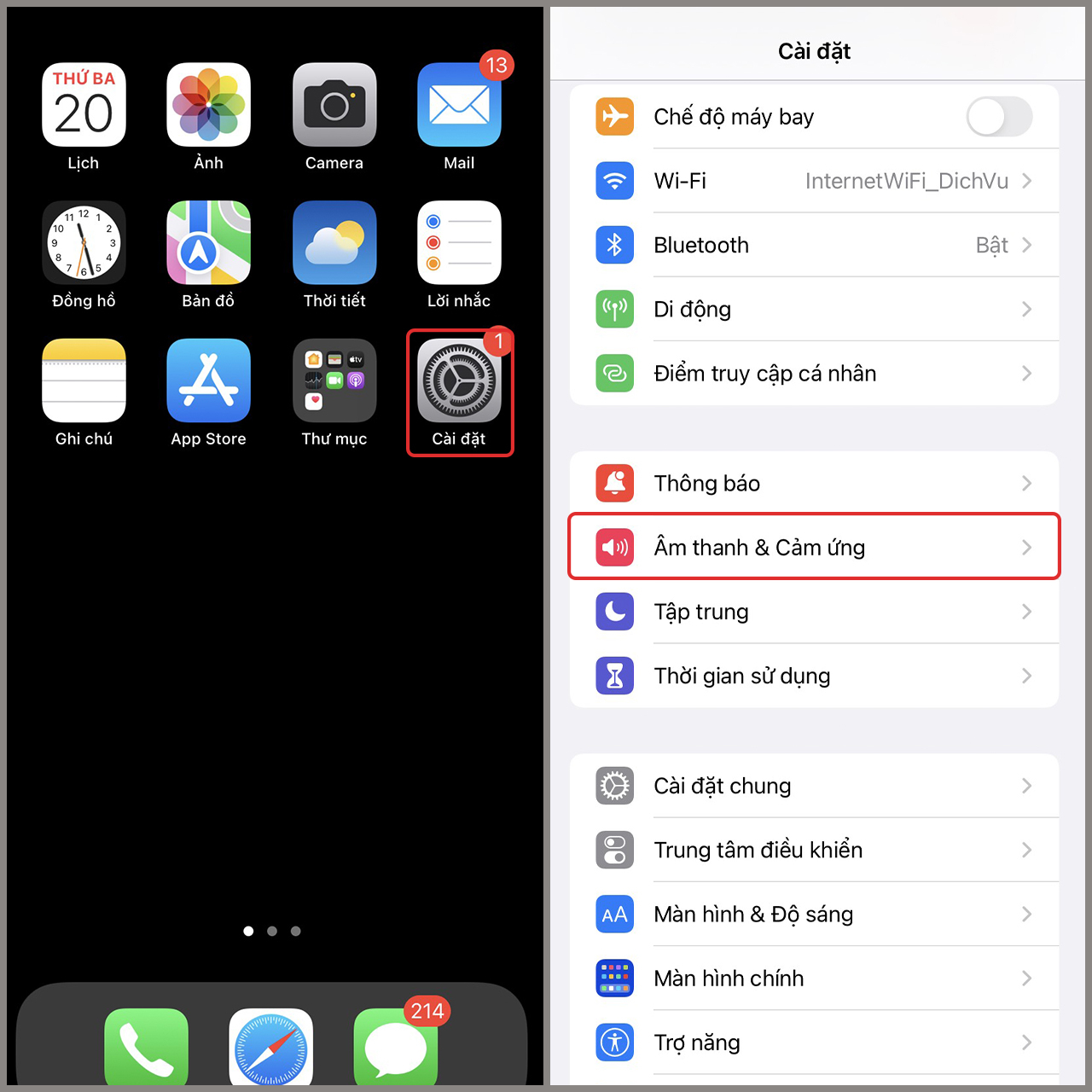 - Chọn Âm thanh & Cảm ứng