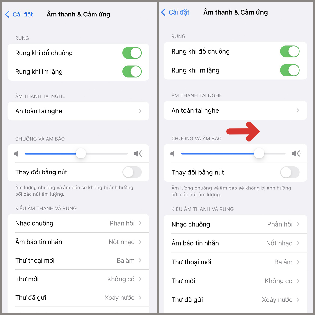 - Bật tùy chọn Thay đổi bằng Nút để có thể điều chỉnh âm lượng chuông bằng nút âm lượng