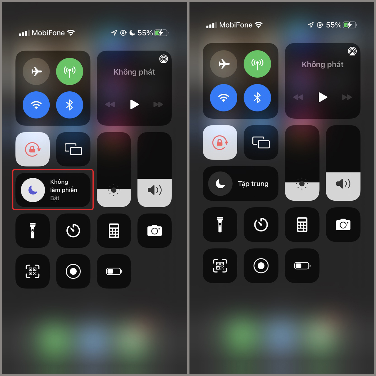- Tìm biểu tượng mặt trăng (Focus/Không làm phiền)