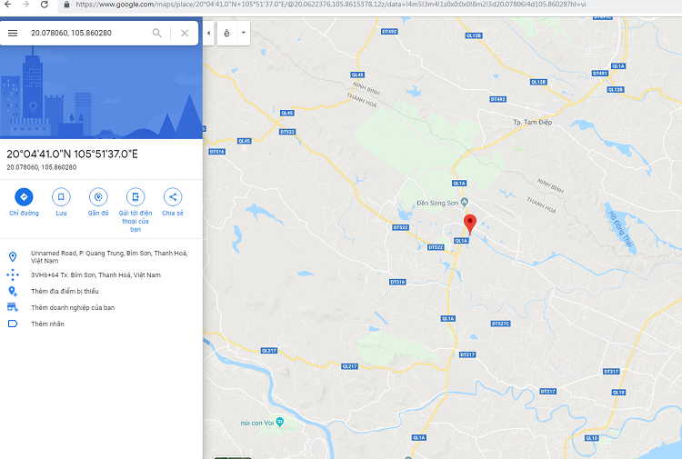 Bước 7: Cuối cùng chúng ta hãy dán địa chỉ vừa copy qua Google Map để biết được địa chỉ cụ thể nhé.