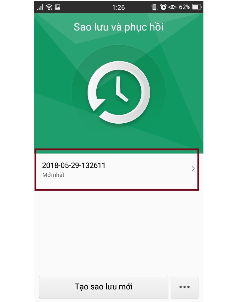 Bước 6: Lúc này, bạn vào mục Back up >> Chọn Data >> Các bạn sẽ tìm thấy file mà bạn vừa tạo.