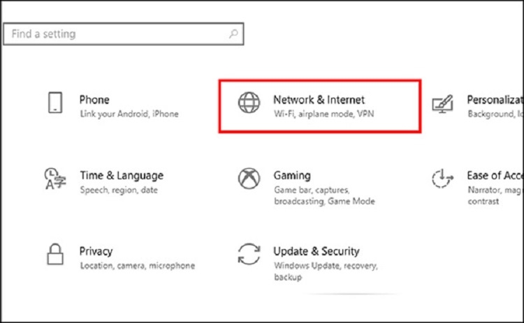 - Trong cửa sổ Settings, điều hướng đến mục Network & Internet.