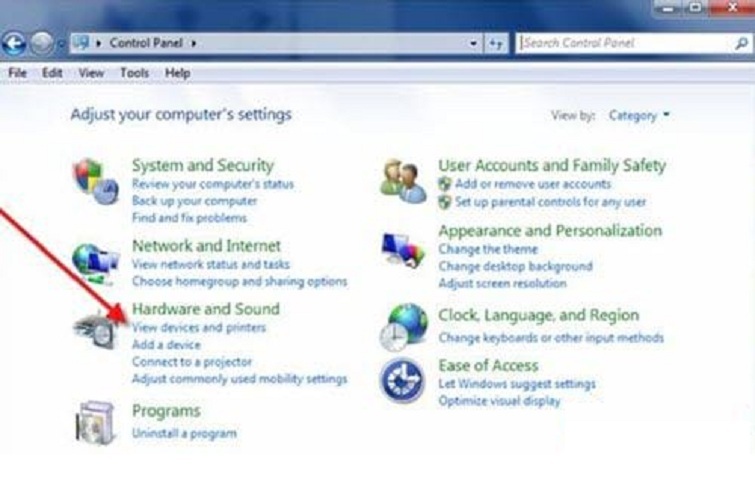 - Trong cửa sổ Control Panel, tìm và nhấp vào mục Devices and Printers.