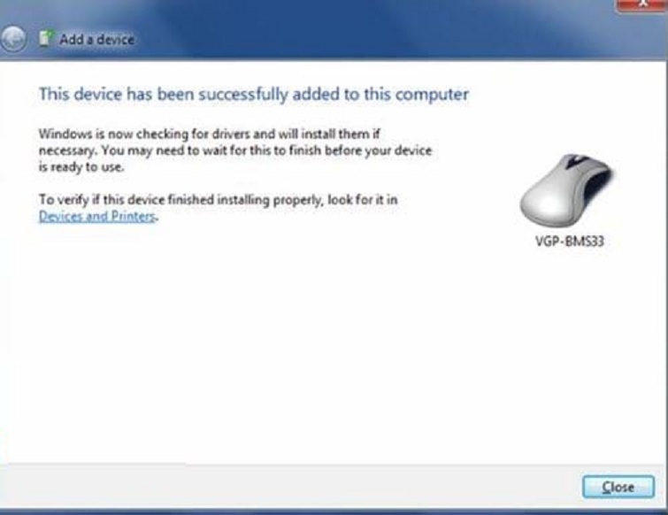 - Nhấn Close để đóng cửa sổ và bắt đầu sử dụng thiết bị Bluetooth.