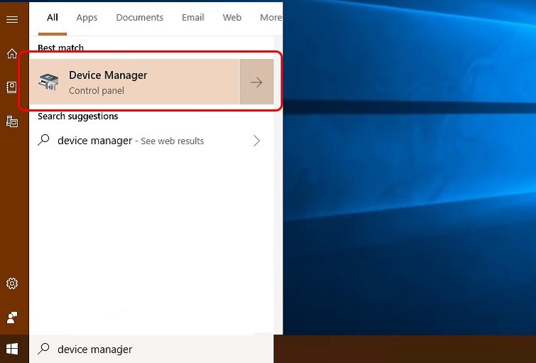 - Nhấn vào Start Menu, gõ Device Manager vào thanh tìm kiếm và nhấn Enter.