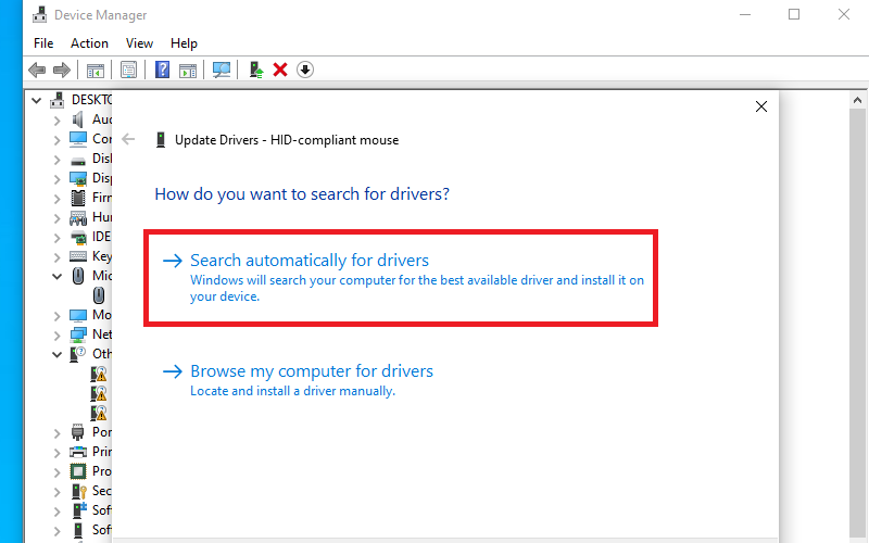 Lưu ý: Trên Windows 10/11, nếu chuột không hoạt động, kiểm tra trong Device Manager (nhấn Windows + X > Device Manager) dưới phần "Mice and other pointing devices". Nếu thấy dấu chấm than vàng, cần cập nhật driver.