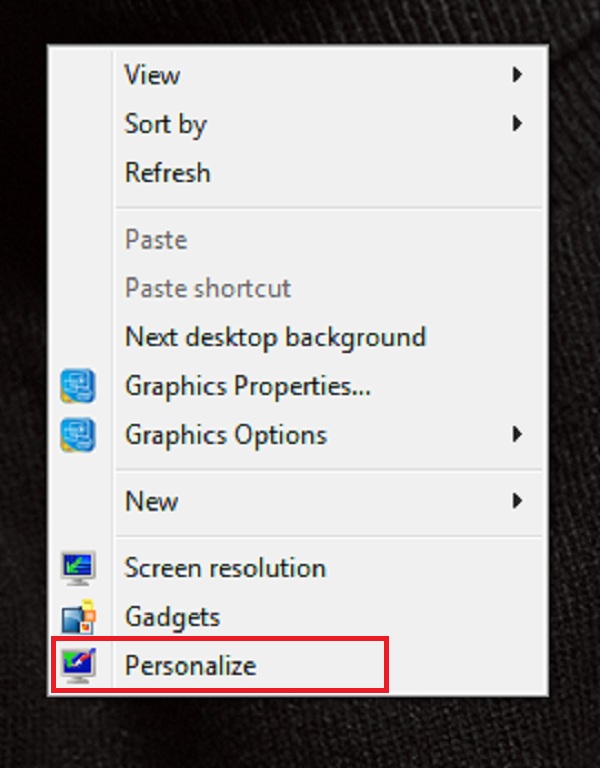 - Bước 1: Bạn click chuột phải ngoài màn hình rồi nhấn vào mục Personalize.