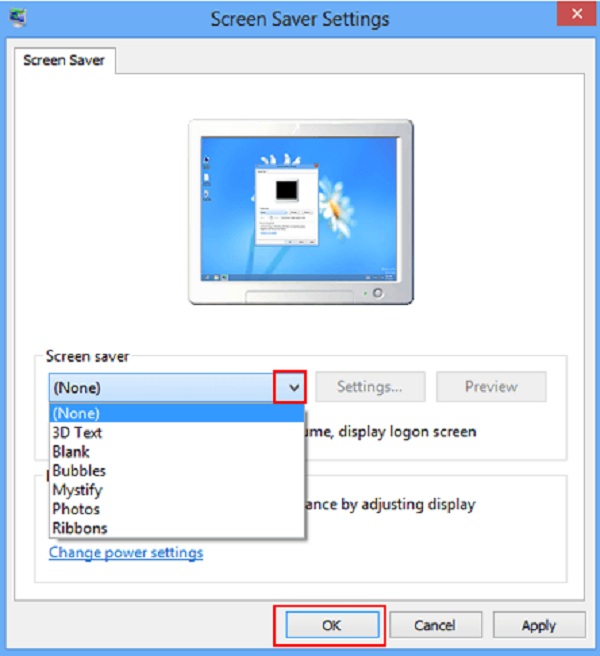 - Bước 3: Sau khi hoàn thành các thao tác trên, một hộp thoại mới sẽ xuất hiện. Tại đây, bạn nhấp vào mục "Screen saver" >> Chọn loại trình bảo vệ màn hình mong muốn và nhấn "OK " để hoàn tất thiết lập.