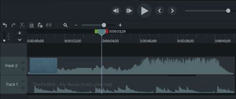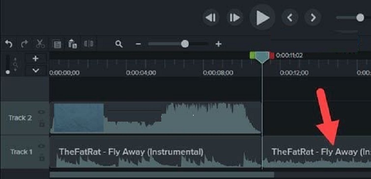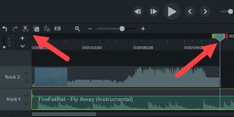Bước 8: Đến đây, bạn dóng cho 2 file bằng nhau, nếu file nhạc có thừa đi một đoạn nào thì bạn sử dụng công cụ cut để thực hiện tách 2 đoạn đó ra.