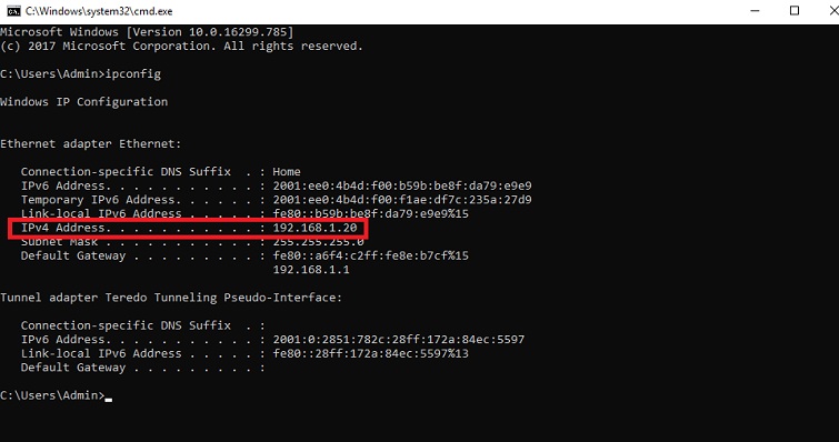 Bước 2: Tiếp theo, bạn gõ lệnh ipconfig để có thể xem địa chỉ IP máy tính của mình.