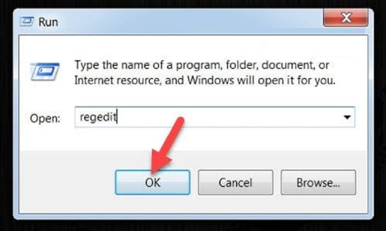 Gõ lệnh regedit vào ô trống và nhấn Enter.