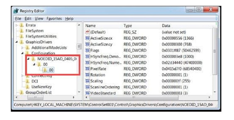HKEY_LOCAL_MACHINE > SYSTEM > ControlSet001 > Control > GraphicsDrivers > Configuration -