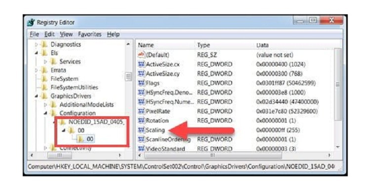 HKEY_LOCAL_MACHINE > SYSTEM > ControlSet002 > Control > GraphicsDrivers > Configuration