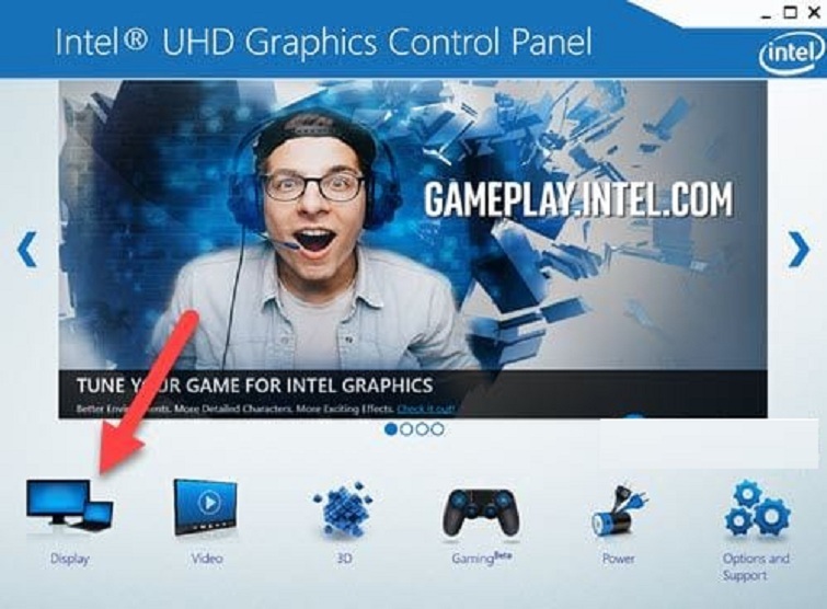 Trong giao diện Intel Graphics Control Panel, chọn mục Display.