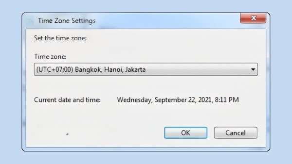 - Bước 4: Chọn Change time zone, đặt (UTC+07:00) Bangkok, Hanoi, Jakarta và xác nhận.