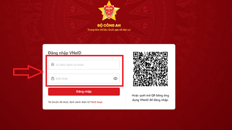 Bước 3: Nhập số định danh cá nhân (12 số trên CCCD) và mật khẩu đã thiết lập.