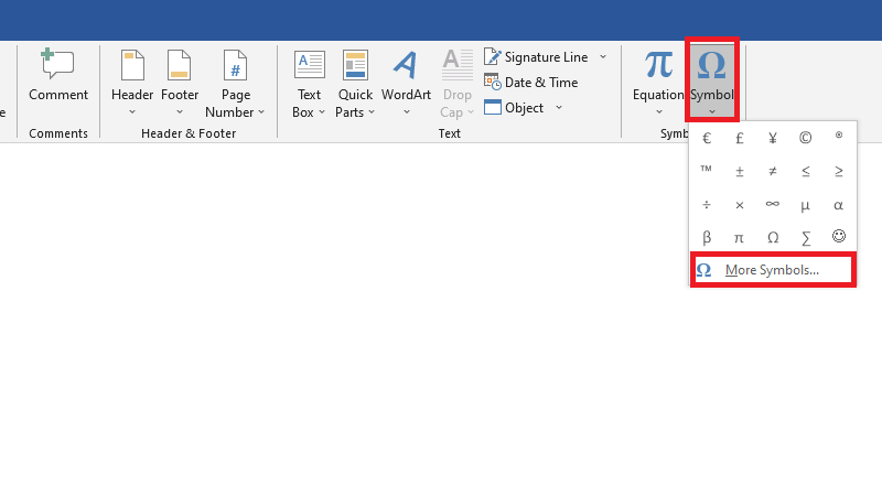 - Vào tab Insert > Symbol > More Symbols.