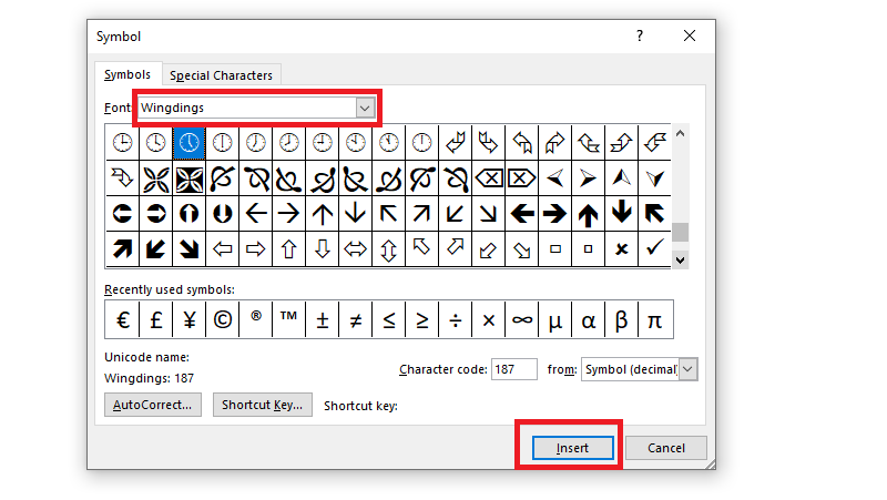 - Chọn font như Wingdings hoặc Segoe UI Symbol để có nhiều biểu tượng mũi tên.