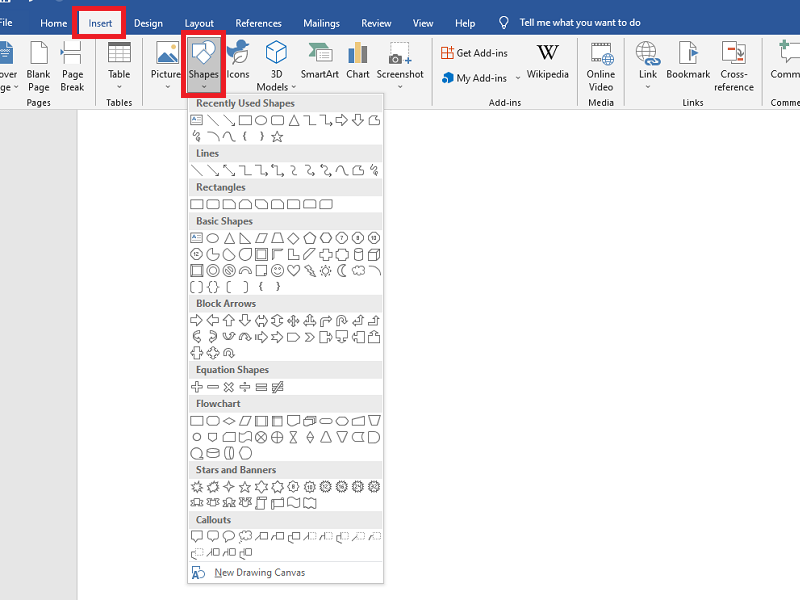 - Vào Insert > Shapes > Chọn Lines hoặc Block Arrows.