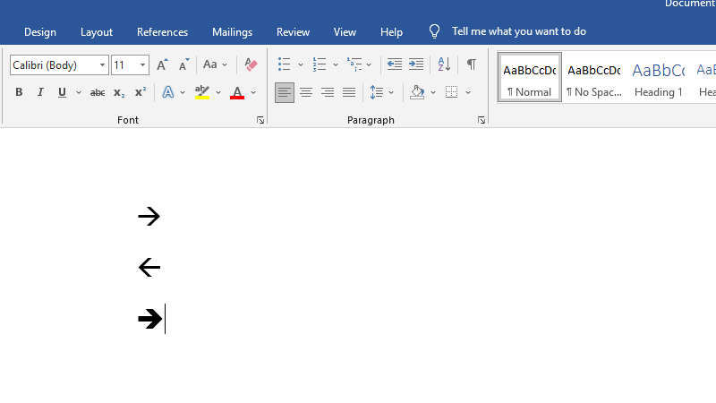 Word hỗ trợ chuyển đổi tự động một số ký tự thành mũi tên. Ví dụ: