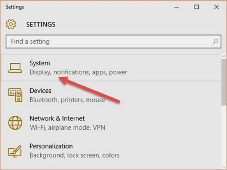Bước 2: Sau đó, bạn chọn vào mục System như hình minh họa bên dưới.