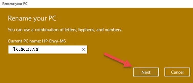 Bước 4: Lúc này, hãy nhập tên mới cho máy tính Windows 10 của bạn.