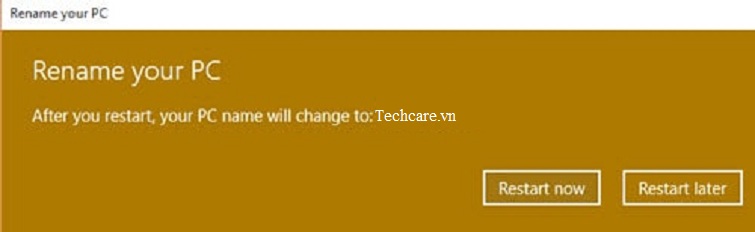 Bước 5: Hệ thống sẽ yêu cầu các bạn khởi động lại máy để hoàn tất quá trình đổi tên máy tính win 10.