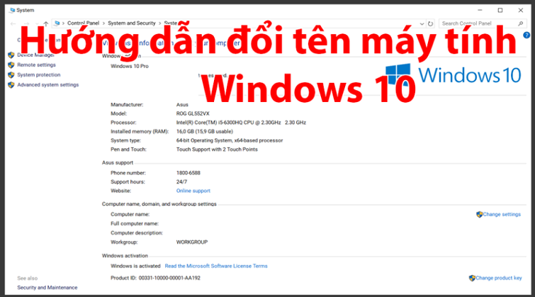 Cách đổi tên máy tính win 10 bằng Control Panel