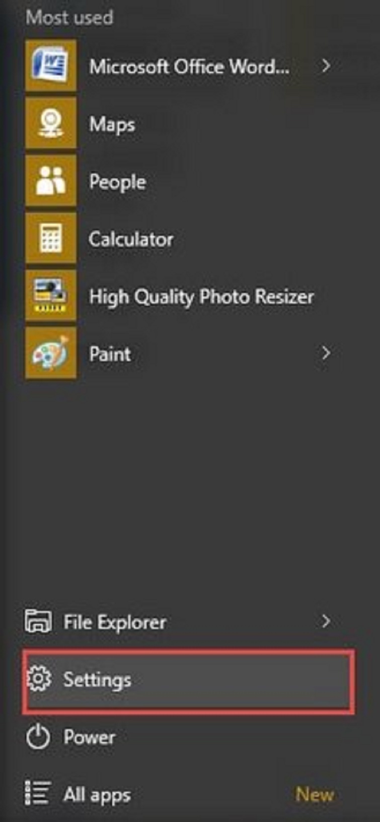 Bước 1: Đầu tiên, các bạn hãy vào phần menu Start, tiếp đến chọn vào Settings.
