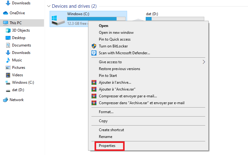 Trên Windows, mở This PC > nhấp chuột phải vào ổ C: > Properties > Disk Cleanup.