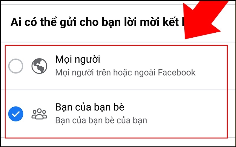 Vào Cài đặt → Quyền riêng tư → "Ai có thể gửi lời mời kết bạn cho bạn?". Đảm bảo tùy chọn không bị giới hạn chỉ bạn bè của bạn bè.
