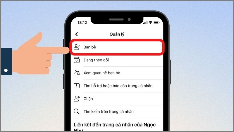 Bước 4: Chọn "Bạn bè" trong menu vừa hiện ra.