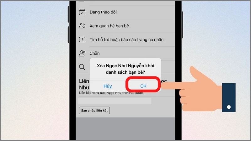 Bước 5: Chọn "Hủy kết bạn" rồi nhấn OK để xác nhận.