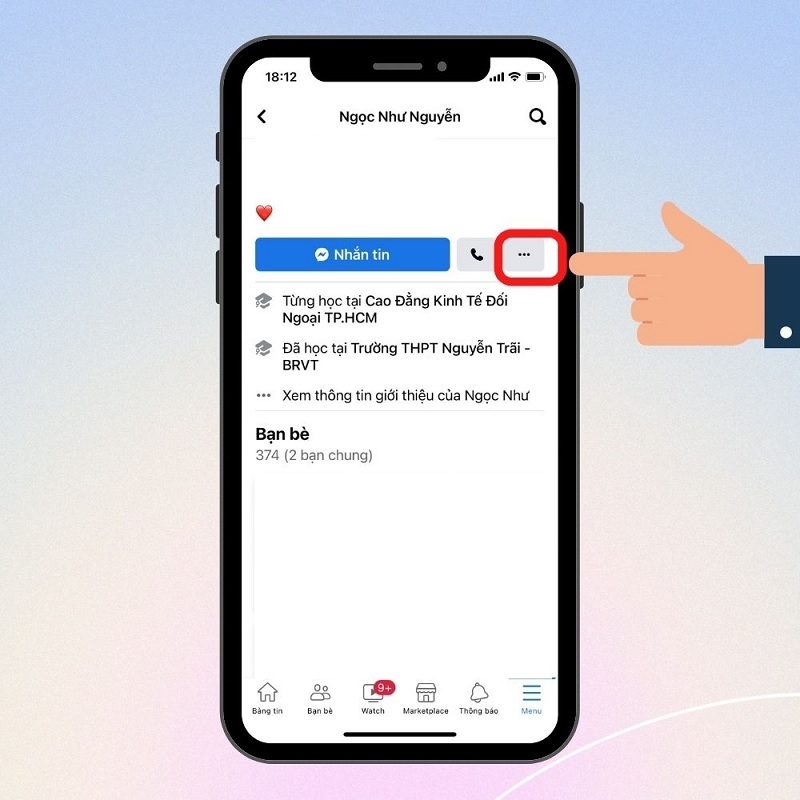 Bước 3: Tại danh sách kết quả vừa hiển thị, bạn cuộn màn hình xuống để tìm kiếm và chọn vào tên của tài khoản Facebook đó. Bạn nhấn vào biểu tượng 3 dấu chấm như hình bên dưới: