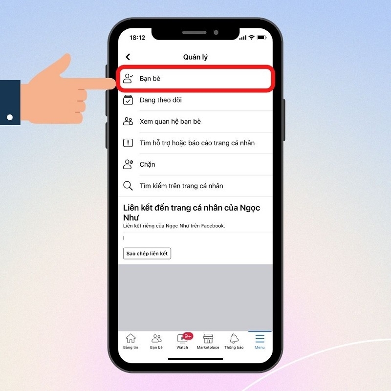 Bước 4: Tại giao diện Quản lý, bạn chọn mục Bạn bè để tiếp tục.