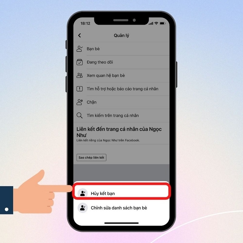 Bước 5: Khi các tùy chọn mới hiển thị, bạn chỉ cần nhấn vào mục Hủy kết bạn.